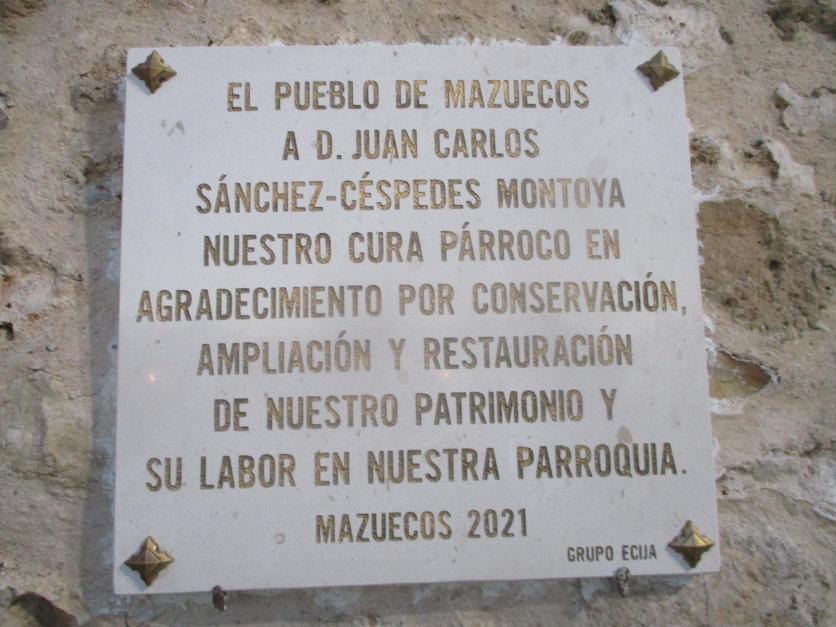 Placa en homenaje al párroco de la iglesia D. Juan-Carlos Sánchez Céspedes Montoya,