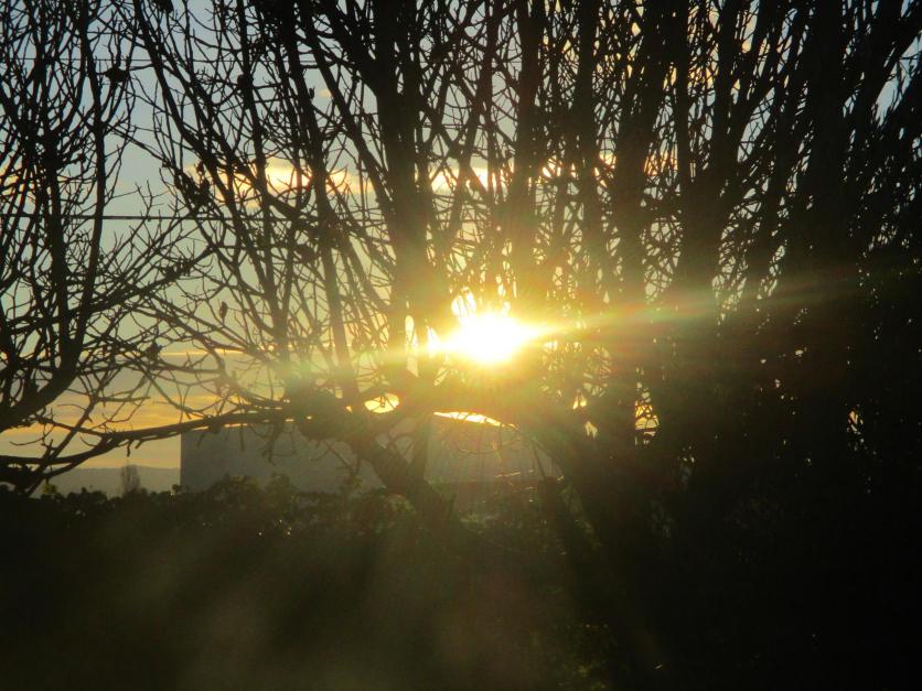 El sol asoma entre las ramas desnudas de las higueras,