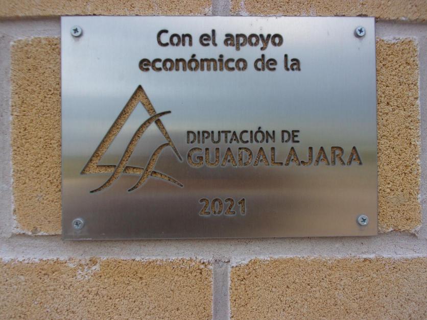Placa de la Diputación en la zona de vestuarios de la piscina,