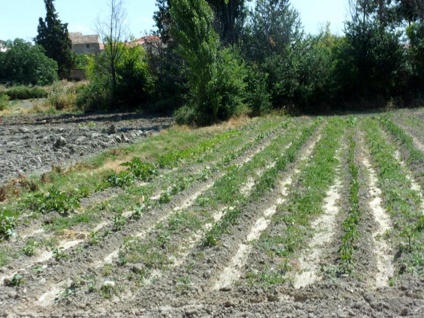 Surcos plantados en una huerta,