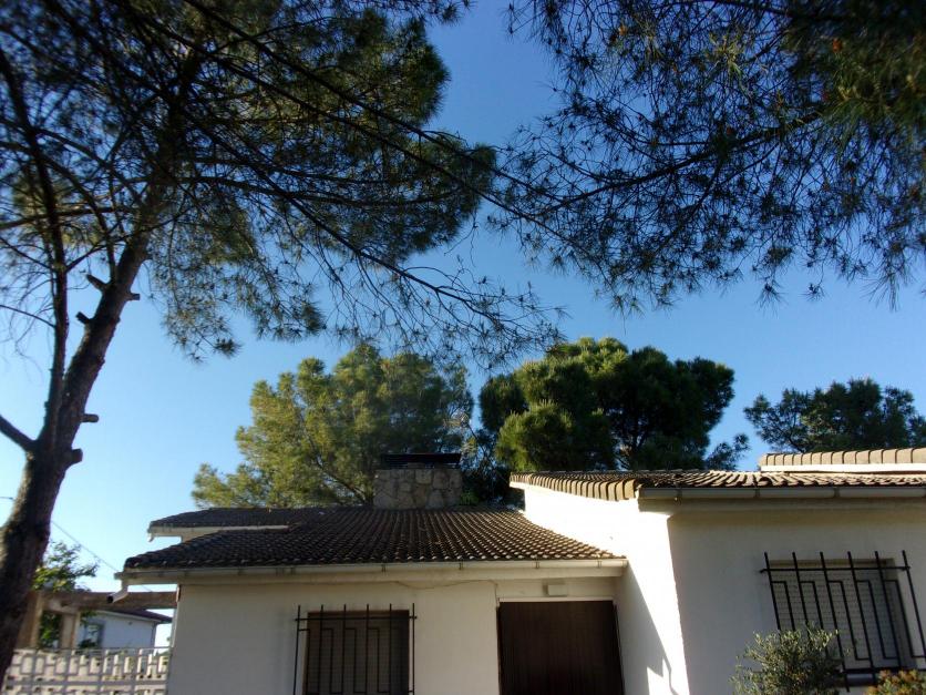 Enormes pinos en el jardín de una casa particular,