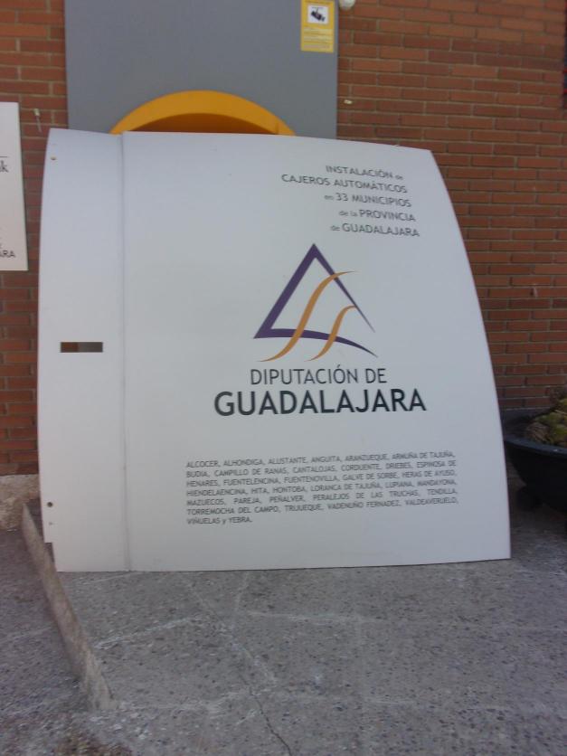 Anuncio indicando la instalación de cajero automático en el pueblo,