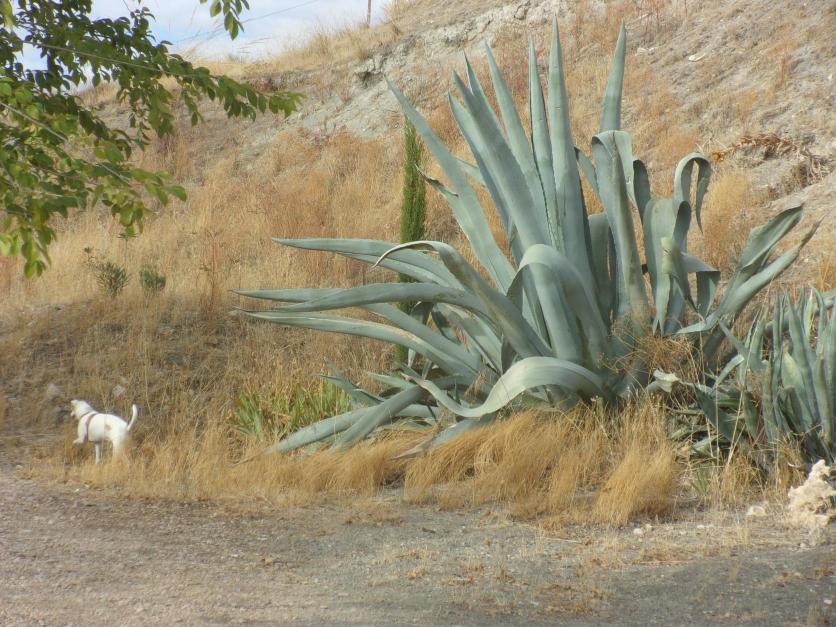 Mi mascota junto a un enorme ágave,