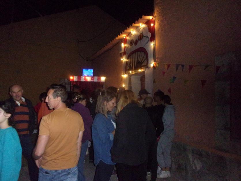 Grupo de personas a punto de acceder al Pasaje del terror, titulado "Pesadilla en el circo",