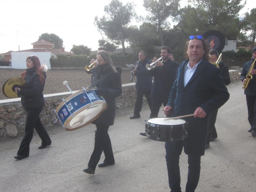 La banda de música amenizando la recogida de autoridades hacia el Ayuntamiento,
