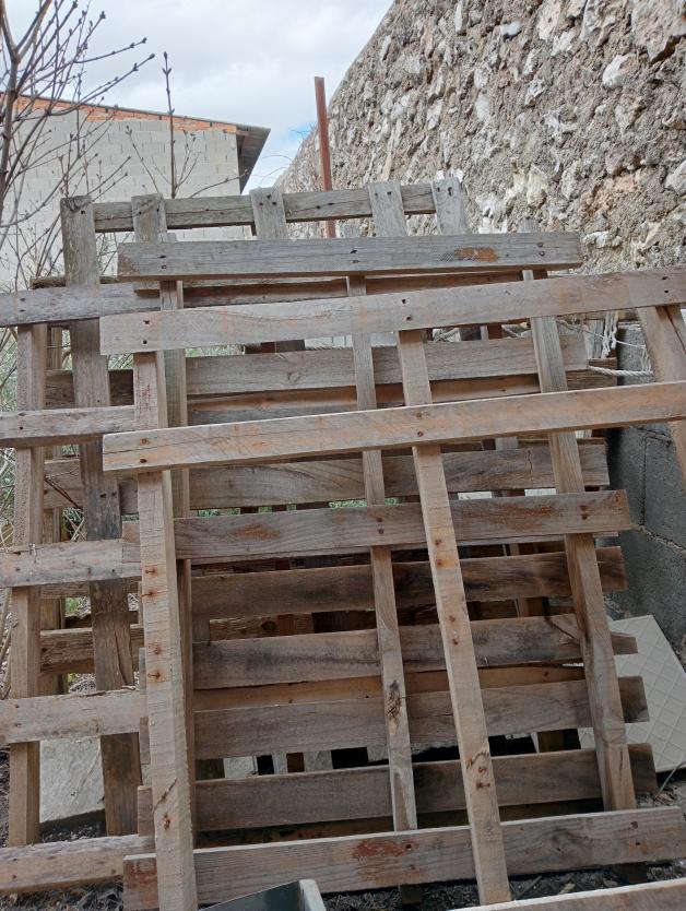 Un montón de palés apilados,