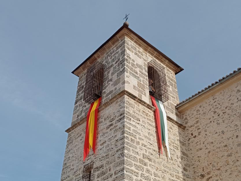 Banderas adornan la iglesia,