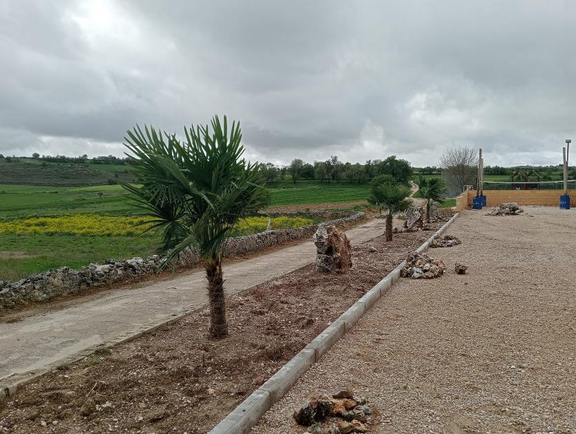 Palmeras plantadas en el exterior de la zona de la piscina,