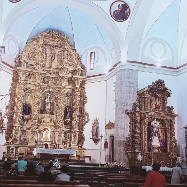 Altar mayor y altar con la Virgen de la Paz,