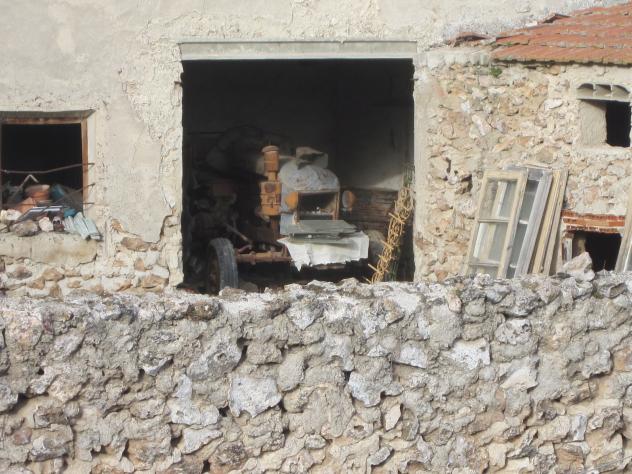 Antiguo tractor en una cochera,