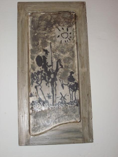 Contraventana pintada con D Quijote y Sancho Panza,