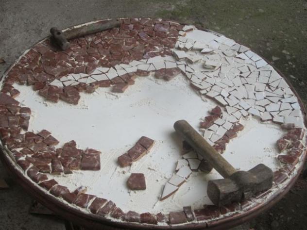 Elaborando una cubierta de mosaico para la mesa,