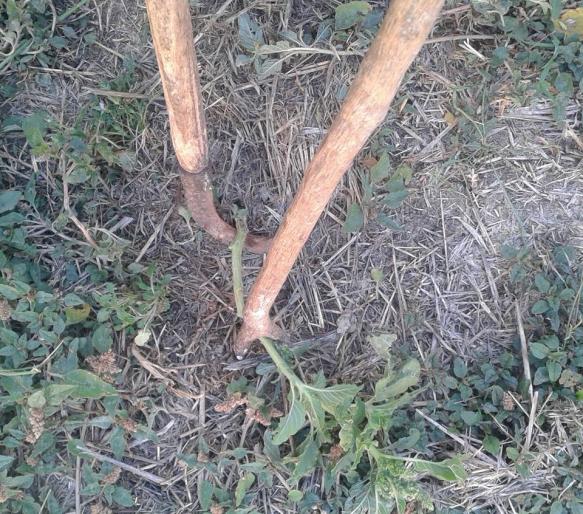 una horquilla y una cuchilla para quitar cardos,