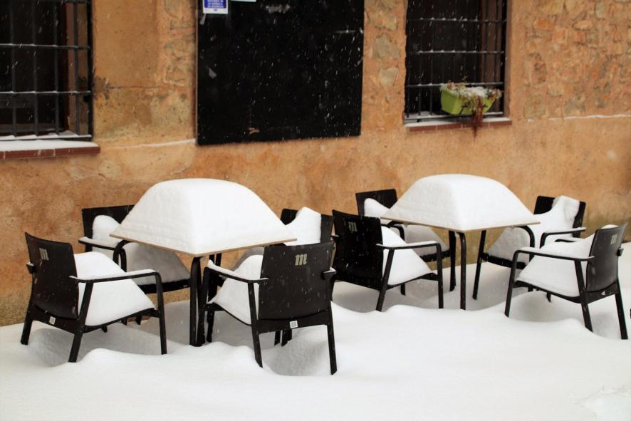dos tartas de nata esperan en el bar,