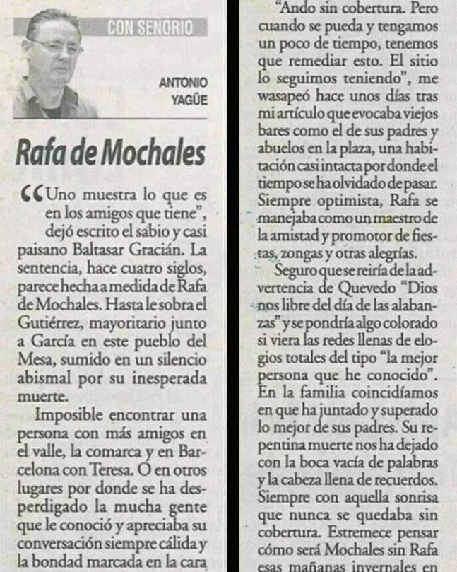Valle del Mesa y con las comunicaciones de distintos lugares, expresando el mayor sentimiento por el fallecimiento de Rafa+, como todos le conocia.