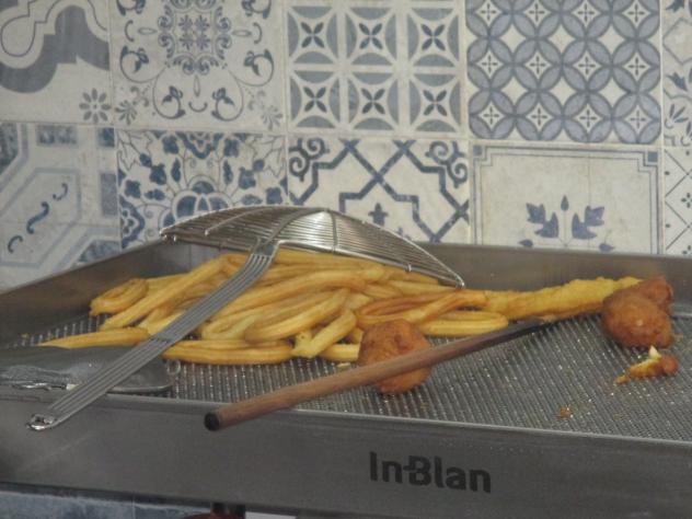 Churros y porras recién hechos en la churrería,