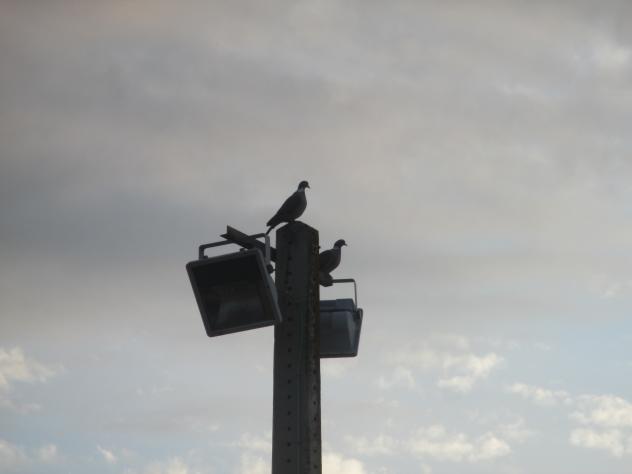 Pareja de palomas torcaces sobre una farola,