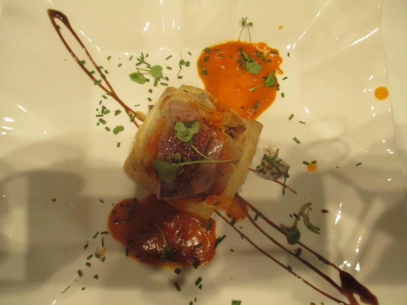 Exquisitos entrantes de mil hojas en el restaurante La Casona de Torres,