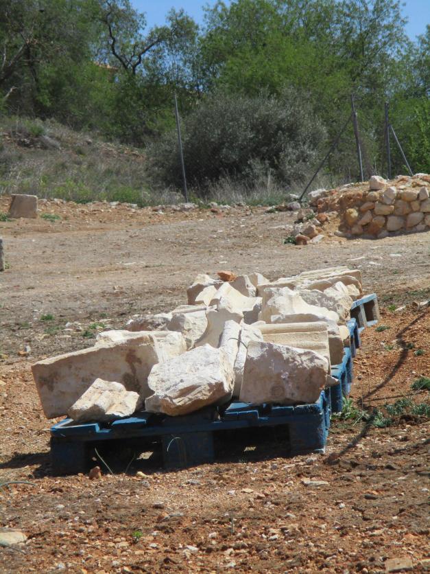 Palets con restos amontonados del convento de San Antonio,