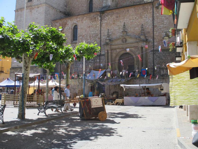 Puestos alrededor de la iglesia durante la feria renacentista,
