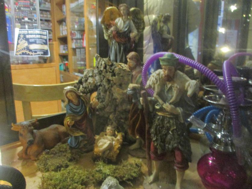Bonito nacimiento en el escaparate del estanco,
