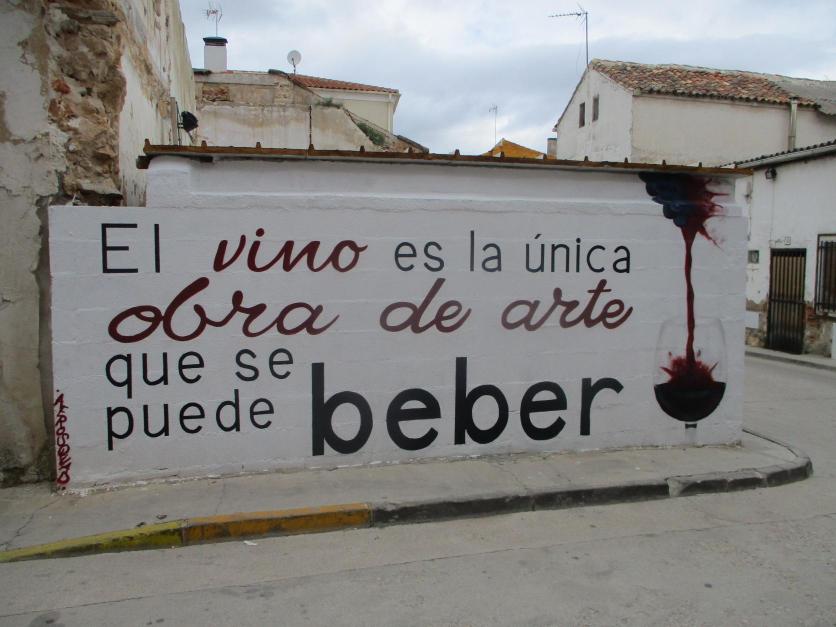 Bonita pintura mural promocionando el vino,