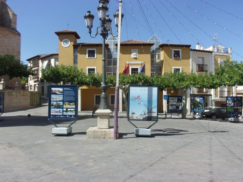 Paneles informativos en la Plaza de España,