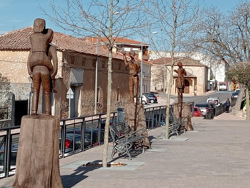 Talas en los troncos en el parque de Agustín Moreto,
