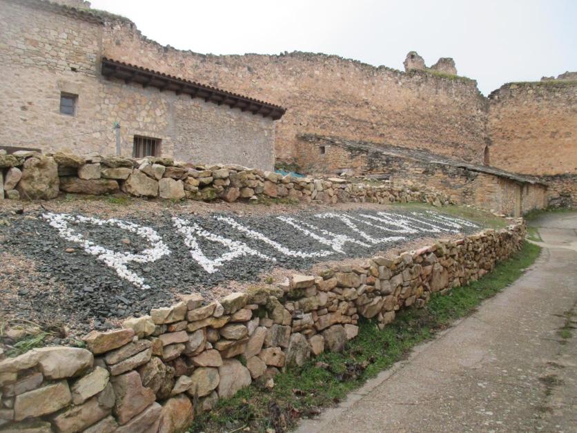 El nombre de la localidad puesto con piedras,