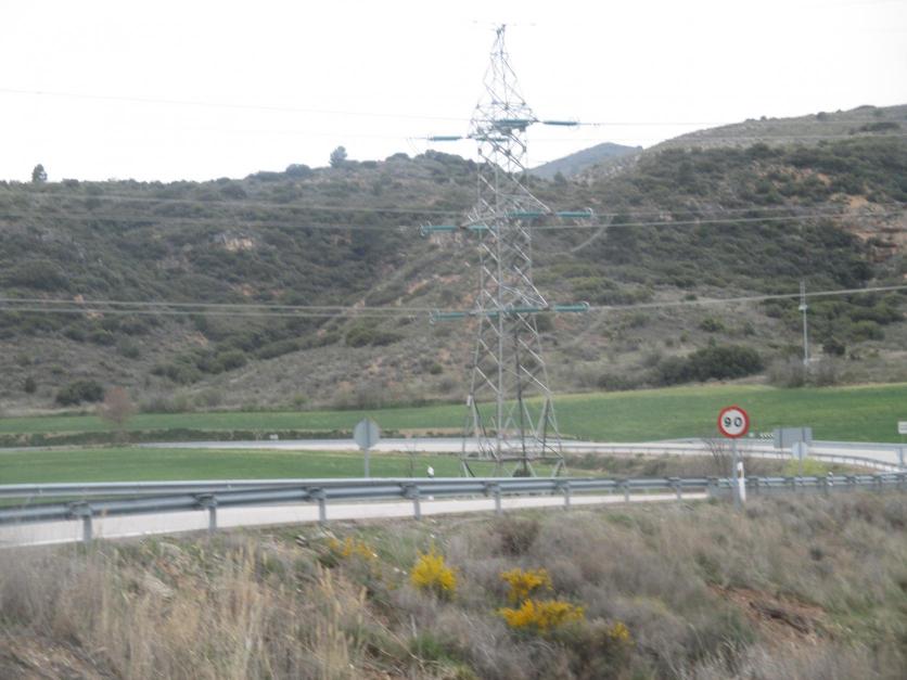 Carretera y torre de alta tensión,