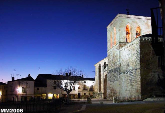 Nocturna, fachada Iglesia y casas,