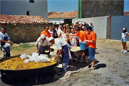 Esto si que es una Paella, quien pudiera un día compartirla con todos vosotros. Que paella! que pinta tan buena, pasaos por Salmerón y nos haceis una igual. Mira yo!!!((que fea por dios)). No no es broma, se ha ideado un nuevo sistema de reparto de platos, en el que todos los comisionados van a ir con patines y faldita plisá, repartiendo platos a toda pastilla. Ya verás ya. Lo de no hacer colas, va en broma ¿NO?