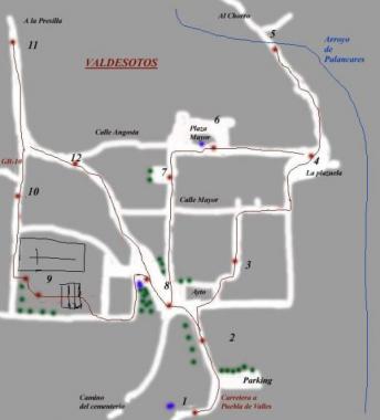 Situado en un rincon envidiable, Valdesotos es el guardian de la Reseva Nacional de Caza del Sonsaz y pueblo señero de La Ribera, a la que embellece con su presencia. Un pueblo escondido a los pies de montañas imponentes, ubicado en un ensanche del valle del arroyo Palancares, rodeado de picos que superan mil metros. Sus calles se deslizan monte abajo hacia el arroyo, que mas tarde ensanchará el valle para acoger los huertos en sus orillas. Luego se vuelve angosto y apenas deja espacio para la carretera, que le sigue hasta su desembocadura en el Jarama.Valdesotos es zona de monte bajo y caza, de barrancos calizos con tremendos desniveles, que conforman un paisaje salvaje y auténtico. Sus pocas tierras de labor están situadas en el valle del Palancares y en pequeñas mesetas que se asoman al Jarama.