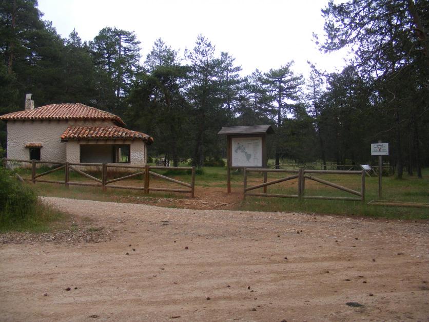 Refugio de la sima de Alcorón e panel informativo,