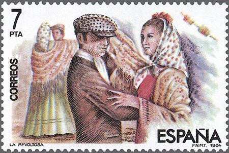 Sellos de España; baile típico de Madrid, " El Chotis",
