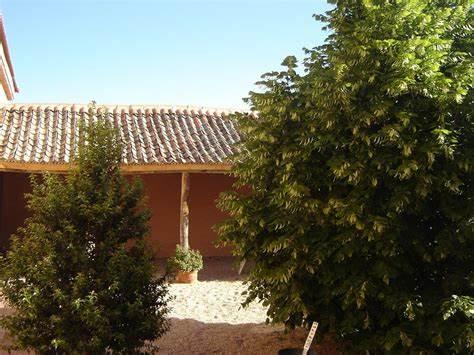 Patio con arboleda, al fondo colgadizo con tejado segoviano,