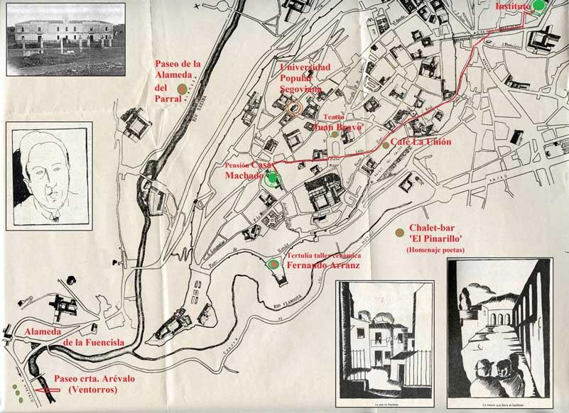Plano de lugares Machadianos en nuestra capital provincial de Segovia,