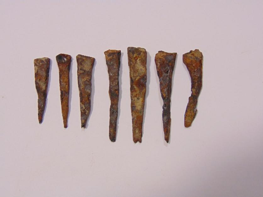 Estos clavos serían la siguiente forma de fabricar esos accesorios metálicos. Posiblemente en la Alta Edad Media en tiempos de visigodos o musulmanes. Es curioso constatar su parecido a "dientes", lo que no puede saberse es si se llamaban así precisamente, o, sea si tú podrías ir en
