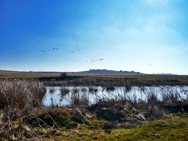 Hay mañanas frías de invierno, que en la balsa se forma una ligera niebla, y gran cantidad de patos se refujian entre sus cañas. Cuando te acercas, los patos se asustan de la presencia humana, y salen volando despavoridos, como puede verse en la fotografia.