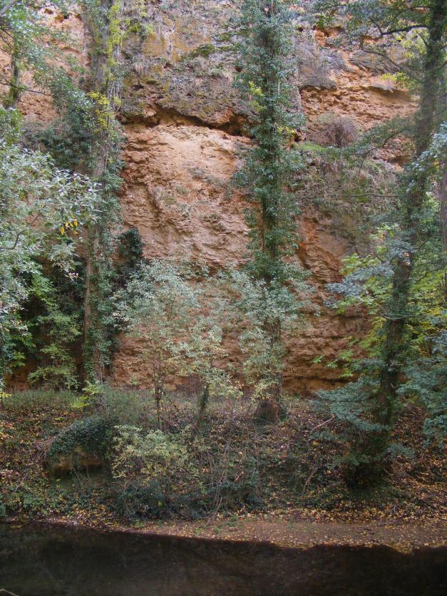 Apenas hay espacio para los árboles entre la pared y el río,