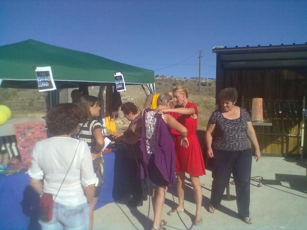 Demostración en un puesto con un fular para mujes que servía para 21 posiciones distintas.