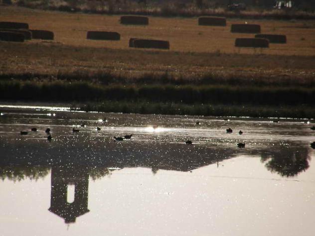 Reflejo de la torre con fochas,