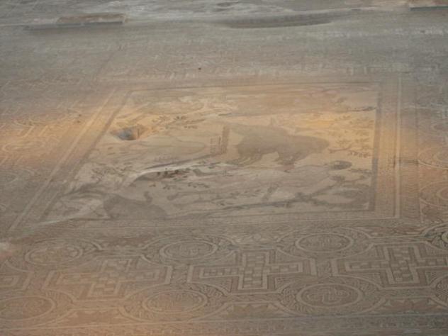 mosaico hombre y bestia,