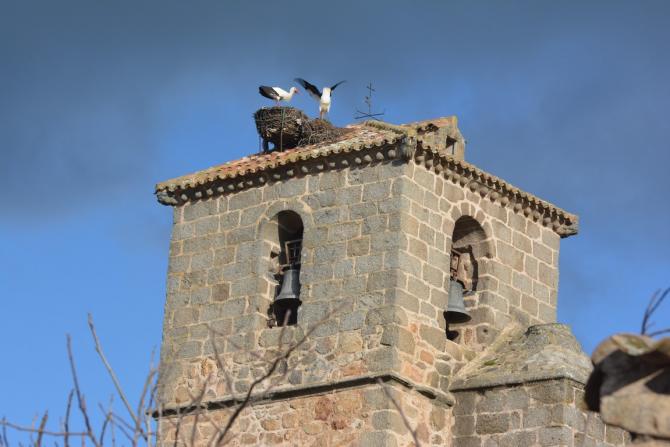 cigüeñas en lo alto de la torre,