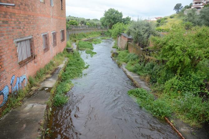 entre las casas y los huertos,