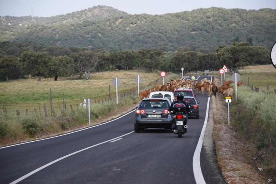 Con las vacas por la carretera,