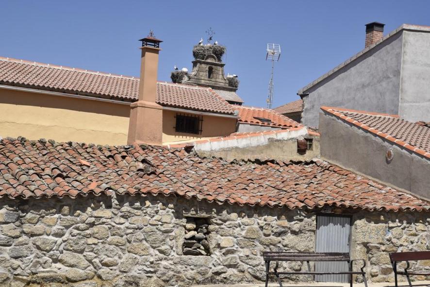 Los bancos y la torre de la iglesia,