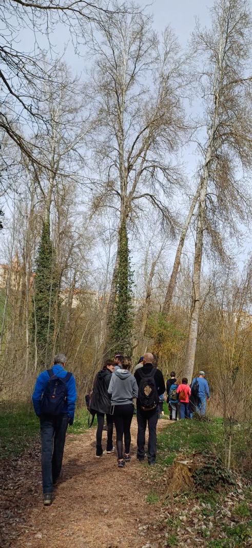 Altos chopos flanquean nuestra marcha por las riberas del Adaja,