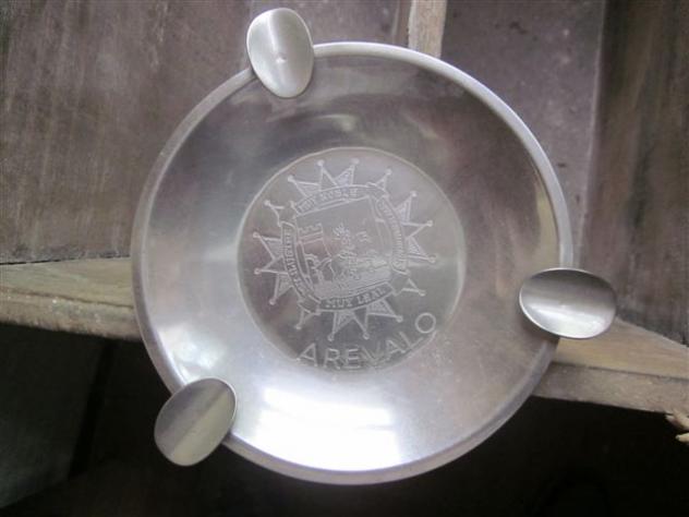 Cenicero de metal con el escudo de la localidad,
