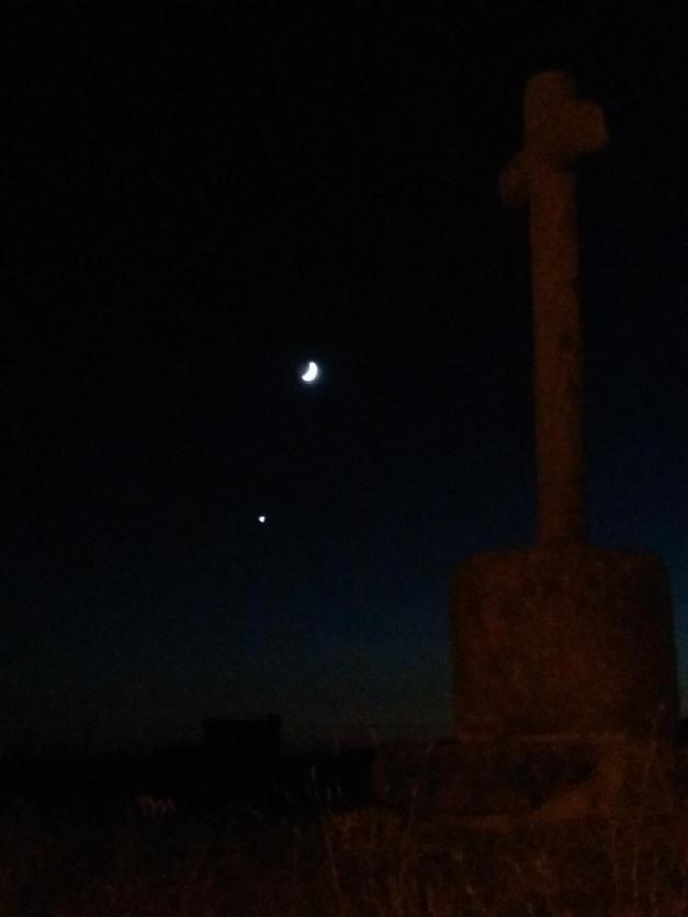 Cruz del risco frente a la luna y venus,